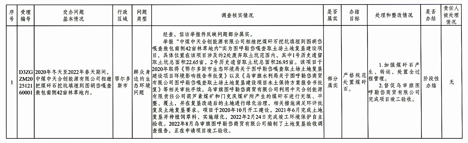 中央生態環境保護督察群眾信訪舉報轉辦和邊督邊改公開情況一覽表(第十五批)